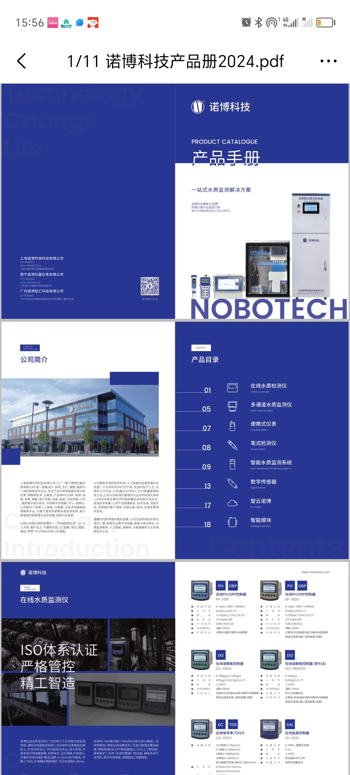 Shanghai Nobo EnvironmentalProtectionTechnology Co.,Ltd.(factory: Nanning NoboInstrument&Meter Co.,Ltd.)is a high-techenterpriseintegrating design,research anddevelopment,production,sales and service.ltfocuses onindependent research and developmentofintelligent water qualityanalysis instrumentsand Internet ofThings technologies. cloud service.Products include PH/ORP,conductivity,dissolvedoxygen,residualchlorine,ozone,ion concentrationturbidity,salinity,sludge concentration.CODammonia nitrogen and other water qualityanalyzers,water quality digitalsensors, DTU, Nobocloud.The companyintegrates Nobo artificiaintelligence,big data,and cloud technology tobuild a smart Internet of Things platform to providecustomers with multi-parameter water qualitwmonitoring systems,promote smart cities andsmart agriculture,and promote industry changes.